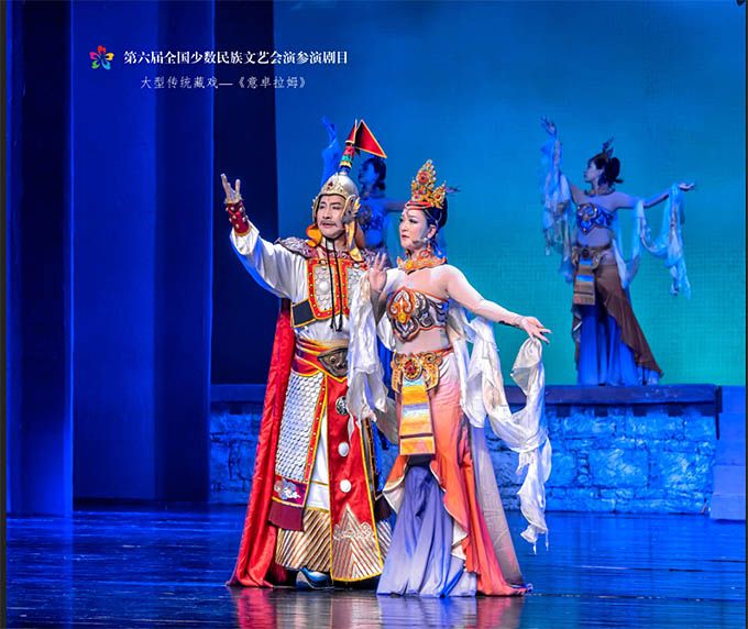 9月14日,作為第六屆全國(guó)少數(shù)民族文藝會(huì)演參演劇目,由青海省選送、青海省藏劇團(tuán)(黃南藏族自治州民族歌舞劇團(tuán))創(chuàng)作演出的藏戲《意卓拉姆》在央視網(wǎng)和國(guó)家民委門(mén)戶網(wǎng)站進(jìn)行演播。該劇講述了傳說(shuō)中的仙女意卓拉姆與人間的諾桑王子相愛(ài),歷經(jīng)挫折與磨難后終成眷屬的愛(ài)情故事,表現(xiàn)出意卓拉姆對(duì)愛(ài)情的忠貞不渝和諾桑王子堅(jiān)韌不拔的意志。