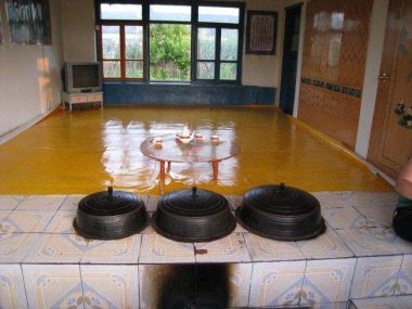 朝鮮族傳統(tǒng)民居建筑主要采用燒炕的采暖方式。一般有多大的屋子,就有多大的炕,這點(diǎn)與東北地區(qū)的漢族與滿族類(lèi)似。一般在早上燒兩灶就可以維持一天,冬天非常溫暖,朝鮮族人們可以在炕上進(jìn)行任何活動(dòng)。