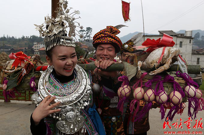 苗族姑娘韋夢(mèng)迪說(shuō):“現(xiàn)在人們生活水平提高了,活動(dòng)的內(nèi)容也越來(lái)越豐富?;顒?dòng)現(xiàn)場(chǎng)的姑娘若對(duì)小伙子有好感,跟過(guò)去情況也不一樣了,只要人好就行?!绷侄创迮嗫仆屠先撕喂疰灿幸粯拥母惺埽骸坝浀靡郧靶〉臅r(shí)候‘打同年’就是吹蘆笙、跳踩堂舞、對(duì)歌,現(xiàn)在‘打同年’活動(dòng)越來(lái)越豐富,還增加了籃球賽、拔河比賽、聯(lián)歡晚會(huì)等很多節(jié)目。”每年寒假回家都要參加“打同年”的廣西大學(xué)學(xué)生潘金鑫來(lái)自融水縣懷寶鎮(zhèn),他說(shuō):“通過(guò)開(kāi)展吹蘆笙、踩堂舞、文藝表演等傳統(tǒng)文化活動(dòng),加深了大苗山黨群干群之間、村寨各族同胞之間的情誼,增進(jìn)了民族團(tuán)結(jié)。我自己也特別能感覺(jué)到家鄉(xiāng)的發(fā)展變化,這讓我很自豪?!?/p>