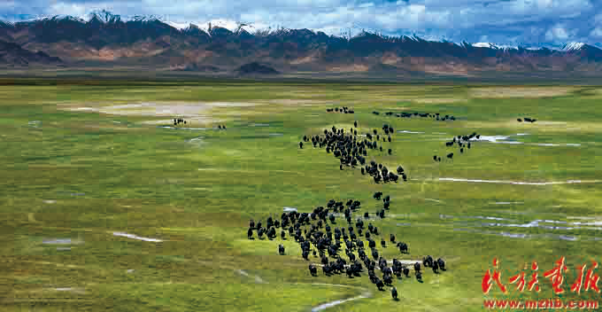 青海擔(dān)負著保護三江源、保護“中華水塔”的重大責(zé)任。為確?!耙唤逅驏|流”,青海各族人民積極投入生態(tài)文明建設(shè),三江源植被逐漸恢復(fù),野生動物數(shù)量增加。圖為野牦牛奔跑在高原(民族畫報資料)
