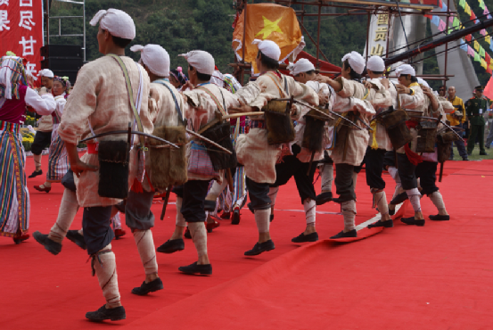 此外還有大量反映各種動(dòng)物習(xí)性的摹擬舞蹈,如“猴子打架舞”“斗羊舞”“斑鳩啄食漆籽舞”“烏鴉喝水舞”“母雞下蛋舞”“江邊陽(yáng)雀舞”等等。