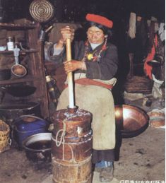 門巴族婦女在打酥油
