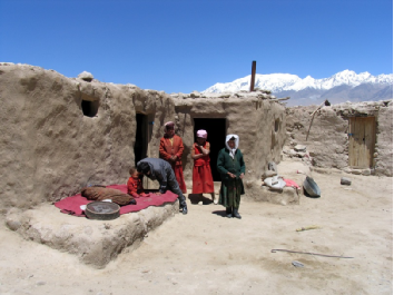 塔吉克族的房屋一般為土木結(jié)構(gòu)正方形的平屋頂,塔吉克語(yǔ)叫做“藍(lán)蓋力”。塔吉克族的房屋雖然沒(méi)有窗戶(hù),但屋頂中央都會(huì)開(kāi)有天窗。