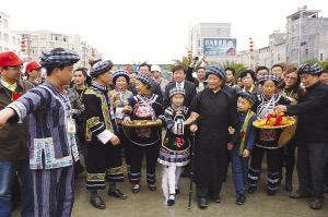 望謨布依寨老和小朋友迎接各位領(lǐng)導(dǎo)、朋友、嘉賓進入活動會場