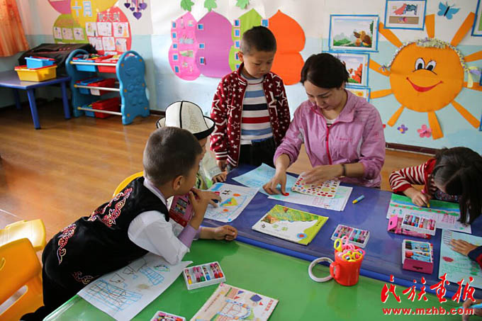 古麗孜娜提帶領(lǐng)孩子一起繪畫