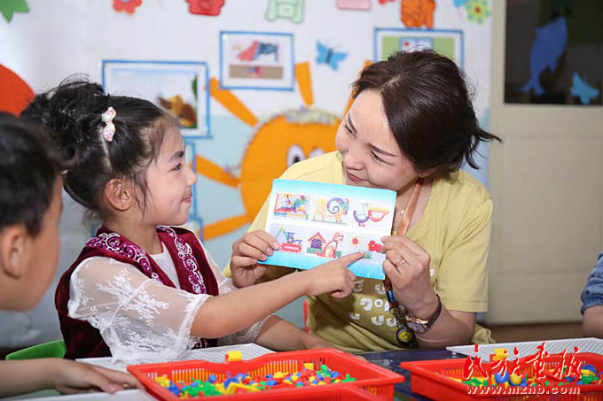 古麗孜娜提說(shuō),在她兒時(shí)記憶中,縣里的幼兒園、小學(xué)和中學(xué),只有幾排墻皮斑駁的平房和破桌椅。因條件太差,父母都想方設(shè)法將子女送到數(shù)百里外的城市讀書(shū)?,F(xiàn)在,幼兒園里,語(yǔ)音室、科學(xué)活動(dòng)室、舞蹈室等一應(yīng)俱全,雙語(yǔ)教師、保育員等人員也按相應(yīng)比例配備到位??h交通部門還安排兩輛專線車每天免費(fèi)接送第三幼兒園師生。能在條件這么好的幼兒園工作,她感到由衷的欣慰,同時(shí)也感到了壓力。