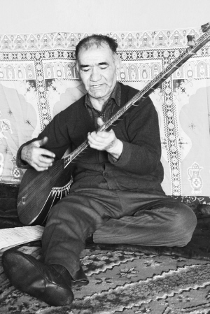“我父親96歲去世,彈了一輩子的都塔爾,唱了一輩子的歌。沒(méi)跟父親學(xué)埃希來(lái),現(xiàn)在想想都很后悔?!币晾缰轂踝蝿e克族文化研究會(huì)常務(wù)副主席吐?tīng)柕匚豳I(mǎi)爾說(shuō)。他的家里仍然保留著一張拍攝于1957年的老照片,是他的父親和另4位會(huì)演唱埃希來(lái)、葉來(lái)的民間藝人的合影。這張照片是當(dāng)時(shí)北京的專(zhuān)家來(lái)調(diào)研烏孜別克族民間音樂(lè)時(shí)所拍的。它的存在證明伊犁曾經(jīng)有著烏孜別克族民歌埃希來(lái)、葉來(lái)的深厚根基。