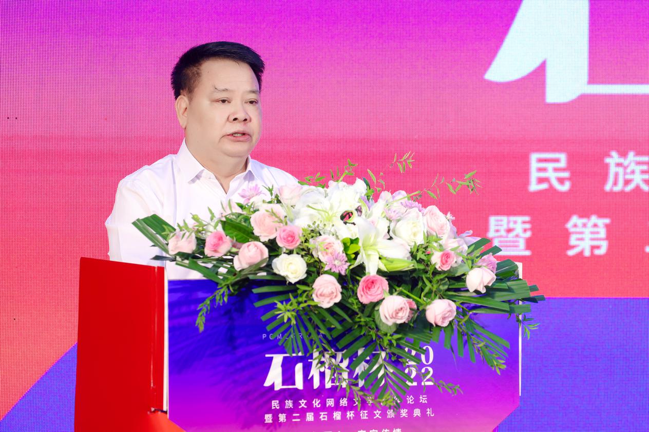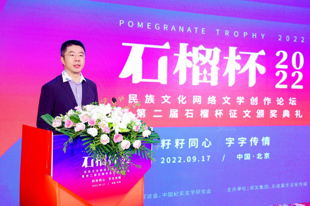 2022年9月17日,民族文化網絡文學創(chuàng)作論壇暨第二屆石榴杯征文頒獎活動在民族文化宮舉行。本次活動得到了國家民委所屬中國少數民族文化藝術促進會和中國紀實文學研究會的指導與支持,由閱文集團、北京天成嘉華文化傳媒主辦,天成達星國際傳媒承辦。