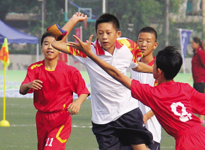 19日舉行的開幕式文藝表演《鼓舞你我他》,特別突出了體育元素和民族元素的結(jié)合,1000余名來自北京市各行各業(yè)的非專業(yè)演員參與演出。(上圖為運(yùn)動會開幕式現(xiàn)場;下圖為運(yùn)動會綾球比賽現(xiàn)場。)