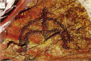 彩繪巖畫作為南系巖畫的主要代表類型,在寧夏境內并不多見,僅在石嘴山白芨溝的一處坐北朝南的天然洞窟中發(fā)現(xiàn),巖洞敞開,可容納數(shù)百人。被發(fā)現(xiàn)的彩繪巖畫分布在高8米、長10米的崖壁上,坐西向東,以赭石顏料涂繪,有24組42幅精美的巖畫,內容包括狩獵、騎者、牧歸,以及牛、羊、馬、狗等動物。這些罕見的彩繪巖畫時至今日依然是“養(yǎng)在深閨人未識”,更讓人擔心的是隨著環(huán)境污染造成的自然破壞已經讓這些彩繪巖畫顏色發(fā)白,亟待引起重視,加以保護。