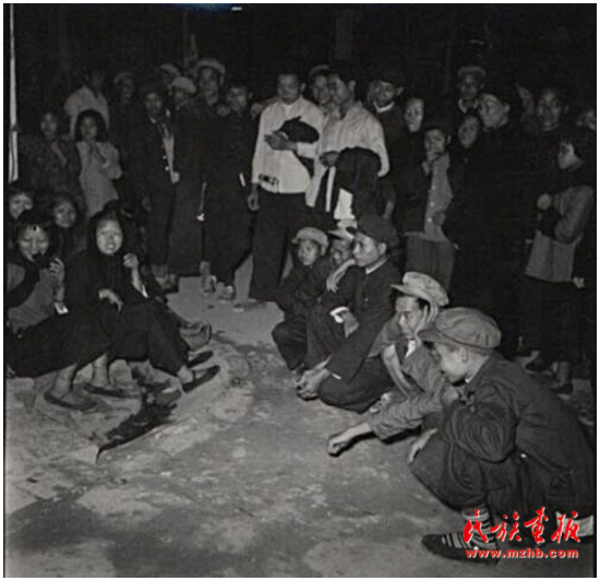 “歌圩”是桂西壯族古老的風(fēng)俗。每年農(nóng)歷正月、二月、四月都有歌圩日。圖為1957年廣西壯族自治區(qū)憑祥市郊區(qū)的歌圩日,這里不但處處歡歌笑語(yǔ),還有搶花炮、演壯戲、舞彩龍、舞彩鳳、唱桂劇等很豐富的文娛活動(dòng)