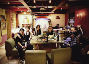 民宿不提供餐食,但設有開放式廚房,天南海北的有緣人齊聚于此,各顯身手,呈現(xiàn)出一大桌美食,對酒當歌,歡笑晏晏,民宿的隨性,讓人恍若回到家里一樣溫暖、親切。