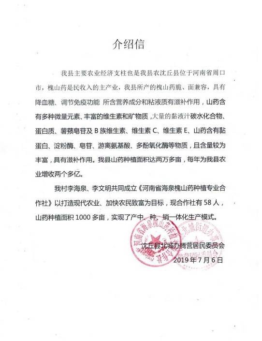 因?yàn)椤盎比龑殹钡男б婷黠@,合作社于2013年成立之初吸納社員102戶,種植面積達(dá)1000多畝。2014年5月,“槐三寶”商標(biāo)順利通過國(guó)家農(nóng)業(yè)部無(wú)公害農(nóng)產(chǎn)品認(rèn)證和無(wú)公害農(nóng)產(chǎn)品標(biāo)識(shí)使用權(quán),基地獲河南省農(nóng)業(yè)廳無(wú)公害農(nóng)產(chǎn)品產(chǎn)地認(rèn)定。發(fā)展到現(xiàn)目前,2019年,其種植面積已經(jīng)超過4000畝,產(chǎn)量在5500噸以上。據(jù)合作社監(jiān)事李文明講:“今年沒澇,現(xiàn)在七月,山藥快成熟了,可以預(yù)見,是個(gè)豐收年。”
