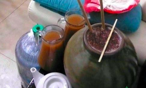 飲用時,將甕口打開,注入開水(冬季用溫開水,夏季用涼開水),然后插入竹管吮吸。竹管以水竹為佳,竹管的長短以甕壇的大小而定,無節(jié)者最佳;如果有節(jié),則事先打通。飲時,在場者沿酒甕圍坐一圈,由年長者最先飲,然后再由左而右,依次輪轉(zhuǎn)。酒汁吸完后可再沖入涼(溫)開水,直至淡而無味時為止。咂酒一經(jīng)開壇,剩酒無論濃淡,均不再飲用。