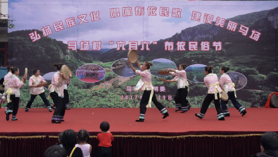 祭祀完成后,當(dāng)?shù)氐哪信仙俅┲约旱拿褡宸?,興高采烈地為客人表演極具民族特色的歌舞。連周邊的苗族同胞也來為布依族節(jié)日慶賀,登臺表演共敘友誼。一些村民們自發(fā)性地登臺參與演出,雖然質(zhì)樸卻不失誠意。