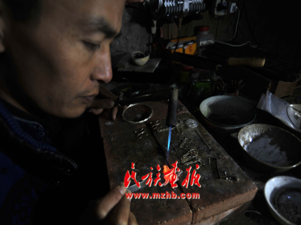 留守村寨的苗族銀匠龍?zhí)枅孕?,在家依靠勤勞的雙手同樣可以致富