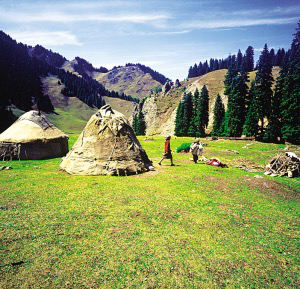 新疆維吾爾自治區(qū)木壘縣大南溝牧場(chǎng)上的氈房