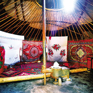 新疆維吾爾自治區(qū)木壘縣大南溝牧場(chǎng)上氈房內(nèi)的裝飾