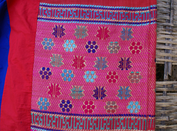 三角鉤鋤是毛南族特有的生產(chǎn)工具,毛南語叫“拱”。它小巧輕便,適合在雞窩地里中耕鋤草,又用于點(diǎn)種黃豆。種黃豆還有一種木制的“點(diǎn)穴錘”,用8寸到1尺長的金剛木削成圓桿,形如搟面杖,中間插一木柄,手握木柄在泥土里一錘,就成一個如雞蛋形的坑,即可放入黃豆,蓋上草木灰。這種“點(diǎn)穴錘”一錘一穴,工效很高,是種黃豆的最佳農(nóng)具。此外還有禾剪、割煙刀等(圖為毛南族織錦)。