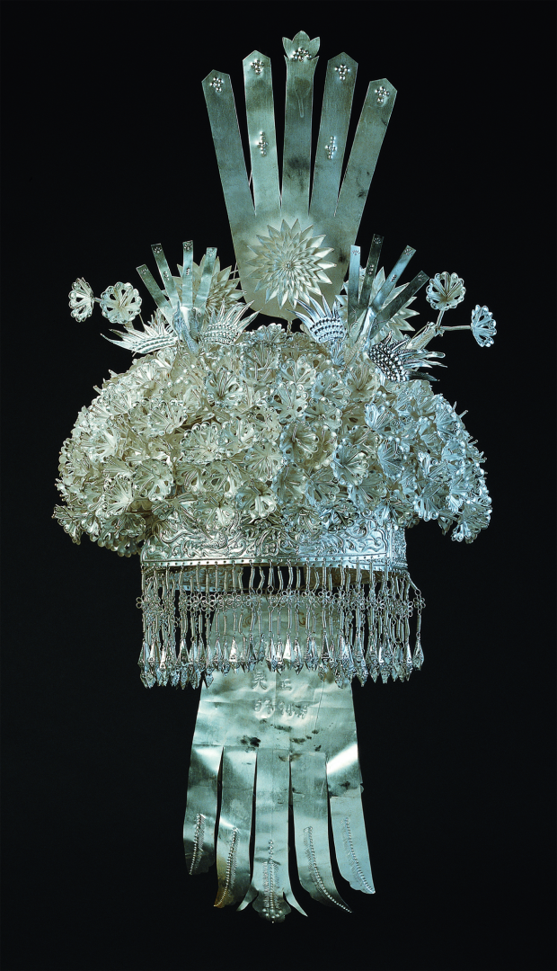 銀飾是苗族服飾文化的重要組成部分,也是苗族貴金屬傳統(tǒng)手工藝發(fā)展水平的集中體現(xiàn)。苗族銀飾以其多樣的品種、奇美的造型和精巧的工藝,向人們呈現(xiàn)了一個瑰麗多彩的藝術(shù)世界,展示著一個有著豐富內(nèi)涵的精神世界。