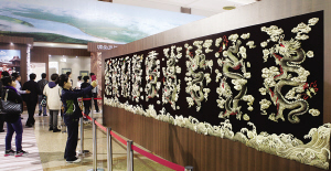 用優(yōu)質大馬哈魚皮手工制作的工藝品”九龍壁”