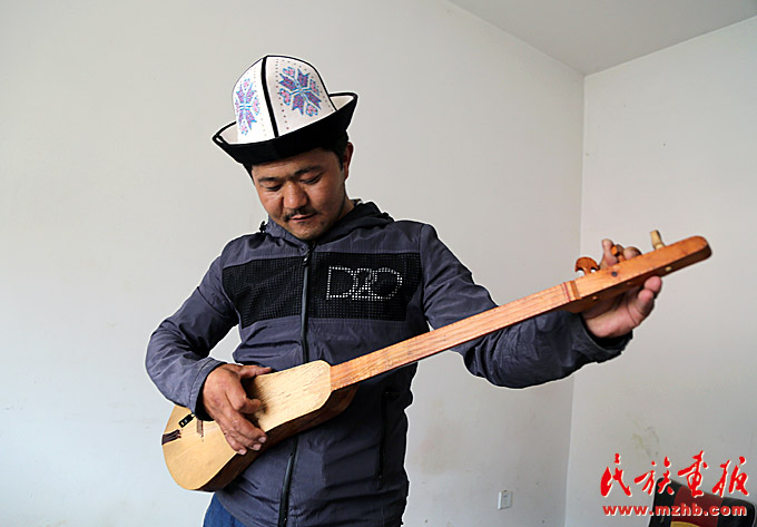 走進(jìn)新疆克孜勒蘇柯爾克孜自治州阿合奇縣色帕巴依鄉(xiāng)色帕巴依村,一排排房屋整齊有序,沿路花壇里開著叫不上名的花,藍(lán)天映照下,顏色格外鮮艷。走進(jìn)一間普通民居,一個(gè)柯爾克孜小伙兒正埋頭打磨著一把木質(zhì)樂器,這正是柯爾克孜族的傳統(tǒng)樂器——庫姆孜。房間里擺著一溜兒木質(zhì)雕刻的半成品。