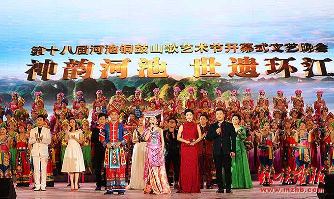 環(huán)江毛南族自治縣舉辦“神韻河池,世遺環(huán)江”第十八屆河池銅鼓山歌藝術節(jié)開幕式文藝晚會
