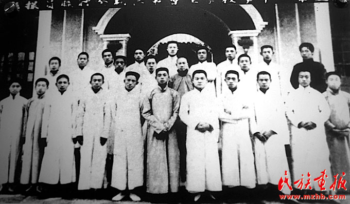 山東省立第一中學(xué)第三期全體學(xué)生會(huì)職員合影,前排右四為鄧恩銘