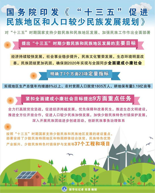 圖表:國(guó)務(wù)院印發(fā)《“十三五”促進(jìn)民族地區(qū)和人口較少民族發(fā)展規(guī)劃》(新華社)