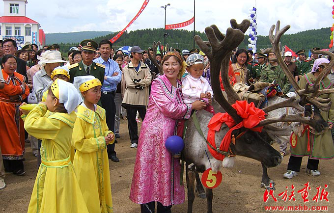 鄂溫克族人飼養(yǎng)馴鹿歷史悠久,無論男女老少都喜愛和保護(hù)馴鹿,將它們視為吉祥、幸福的象征。圖為敖魯古雅鄂溫克族鄉(xiāng)的馴鹿王比賽上的參賽馴鹿