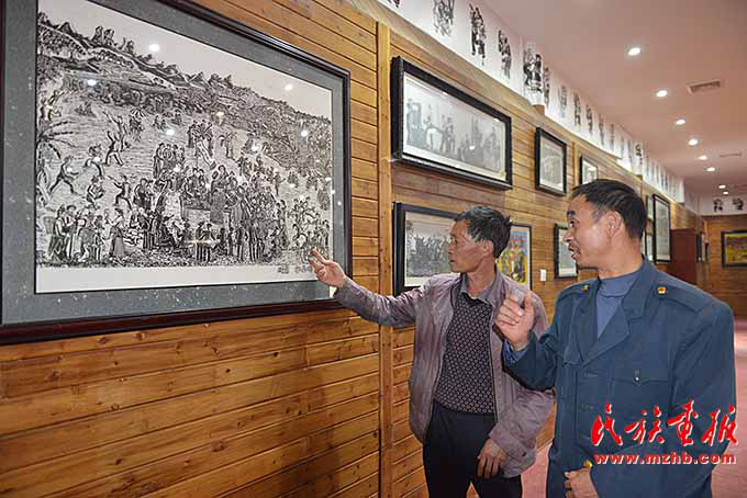 如今,經過四十年的發(fā)展,阿峨新寨版畫的發(fā)展越來越快,2004年村里成立了版畫協(xié)會,深厚的群眾基礎和版畫文化土壤,對穩(wěn)定創(chuàng)作隊伍,提升創(chuàng)作質量具有重要作用。在這支創(chuàng)作隊伍中,現(xiàn)有會員52人,愛好者20多人,年長的六七十歲,年幼的十二三歲?!拔覍Π⒍胄抡灏娈嫵錆M信心,在未來的日子里,阿峨新寨村的發(fā)展會越來越快,日子會越來越紅火?!北R正林說。