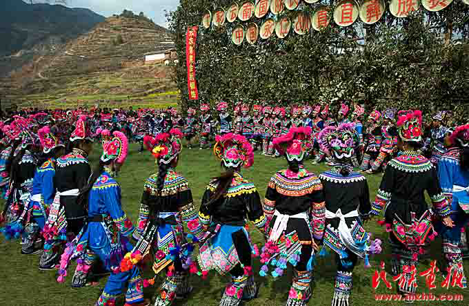 “高山頂上茶花開,阿哥阿妹跳腳來,跳腳跳到黃昏冒,跳腳跳到太陽照……”這是彝族傳統(tǒng)賽裝節(jié)的真實寫照。在云南省楚雄彝族自治州永仁縣直苴村,每年正月十五是當(dāng)?shù)匾妥迦罕姷摹皶r裝節(jié)”,山里的彝家女子都要將自己精心繡制的民族服裝展示出來。