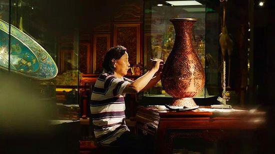 “寶瓶如花放光彩,全憑巧手把花栽,不得白芨花不開,不經(jīng)八卦蝶難來,不受水浸石磨苦,哪能留得春常在。”——這首民謠惟妙惟肖地唱出了景泰藍(lán)制作過程的繁復(fù)與艱深。