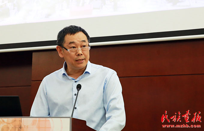 中國少數(shù)民族電影工程推薦影片《侗族大歌》展映前,中國人民大學(xué)黨委副書記鄭水泉致辭
