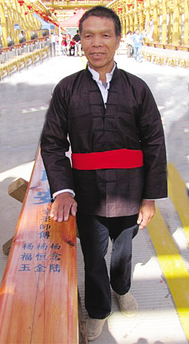 楊恒金個(gè)頭不高,膚色黝黑,手臂壯實(shí),敦厚少言。他用一雙寬厚結(jié)實(shí)的大手捧起了獎(jiǎng)杯,也正是這雙手,打造出了一座座具有侗家特色的木結(jié)構(gòu)經(jīng)典建筑。因?yàn)樵趥鞒邪l(fā)揚(yáng)侗族建筑藝術(shù)方面的杰出貢獻(xiàn),楊恒金被中華木工委授予 “中華木作大師”稱號(hào)。