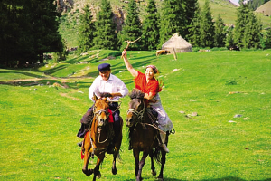 座談會結束后,大家又來到新地溝草原,舉行哈薩克族民間傳統(tǒng)體育活動,哈薩克族群眾紛紛參加姑娘追、摔跤、叼羊、賽馬等活動。一時間人聲鼎沸,歡歌笑語,草原上呈現(xiàn)出一片歡悅的景象。