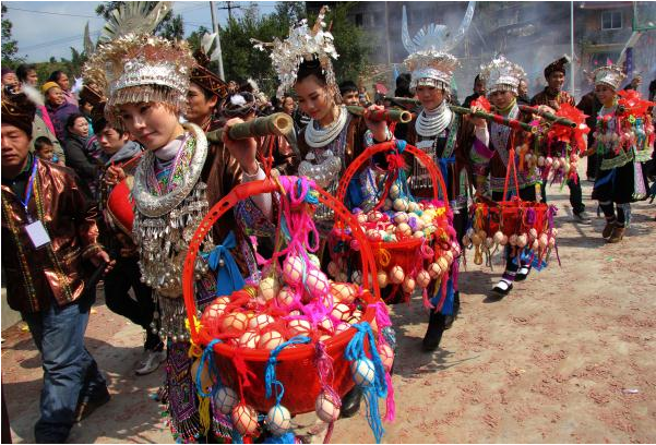 除此之外,春節(jié)期間亦是各民族群眾婚嫁迎娶、走親訪友的高峰期,苗族的送親、送年飯、走妹坐夜、蘆笙打同年等異彩繽紛的傳統(tǒng)禮俗將帶給你不一樣的體驗。
