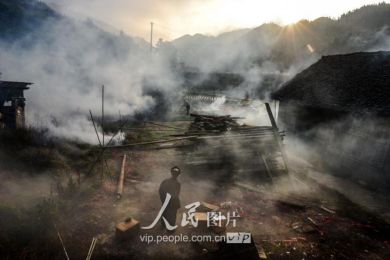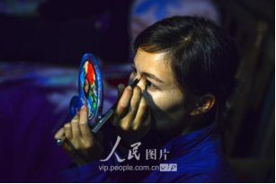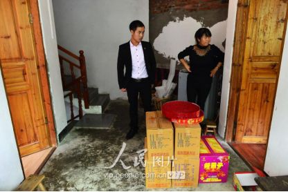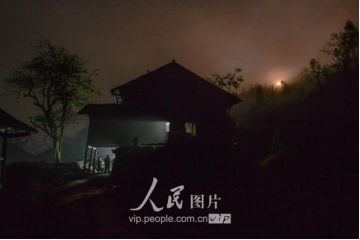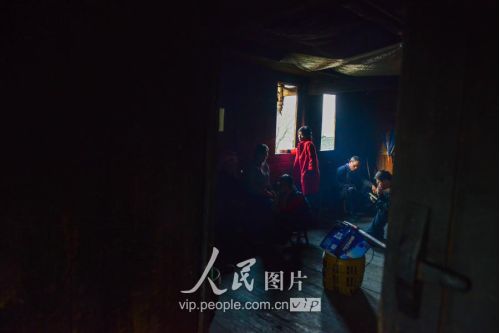 一般要到快過春節(jié)的時(shí)候,男方家才專門請(qǐng)人去接女方來洗糯米、打糍粑,新娘方能在夫家住上一夜;在來年農(nóng)忙時(shí)節(jié),又接女方來幫忙,夜里仍不能在男方家留宿,幫完忙當(dāng)晚即回去,只有待到女方有身孕后,新娘才到夫家長住。圖為11月16日夜,新娘潘芝銀家為準(zhǔn)備婚禮,燈火徹夜長明。
