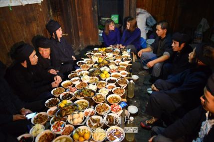 11月16日,新郎家派來的“關(guān)親客”在與新娘家的親戚喝酒對(duì)歌。
