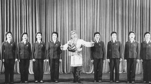 在簡陋的營房里演出完,克里木發(fā)現(xiàn)還有兩個(gè)戰(zhàn)士在哨樓上值班,就帶兩個(gè)演員上哨樓演出。他們還帶了一束路上采的野花,準(zhǔn)備獻(xiàn)給為國戍邊的可愛的人。