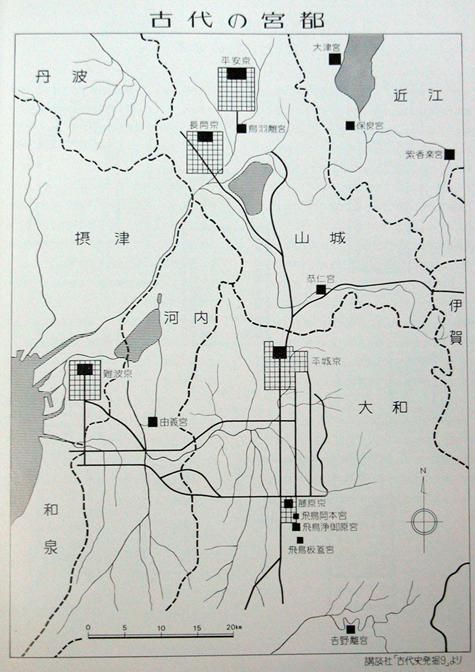 日本在這一時(shí)期開始建立自己的宮殿,在此之前都是茅草屋,并開始不斷遷都,整體都城呈現(xiàn)出從南向北而遷的趨勢(shì)(圖十九)。