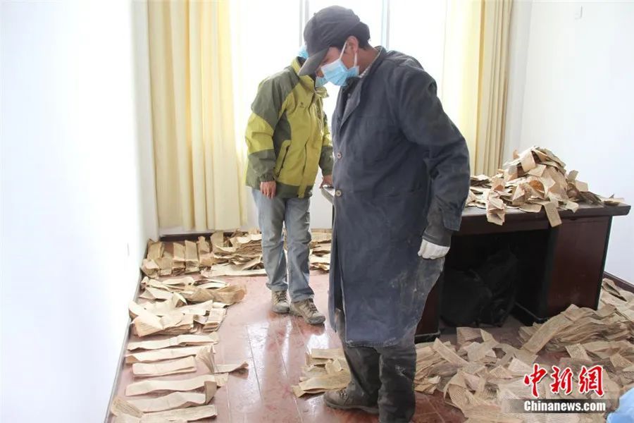 挖掘工作持續(xù)了3天才結(jié)束。由于當(dāng)時(shí)寺院條件簡(jiǎn)陋,古籍散葉被臨時(shí)裝入編織袋中,足足裝滿(mǎn)了68袋。