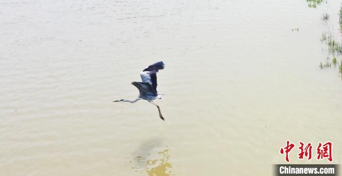 鳥(niǎo)兒在南宮湖濕地公園飛翔?!√锿?攝