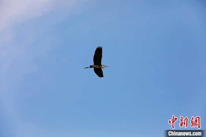 鳥(niǎo)兒在南宮湖濕地公園飛翔。 田威 攝