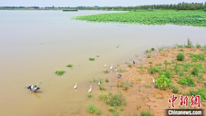 盛夏時(shí)節(jié),雨過(guò)天晴,美麗的南宮湖水波蕩漾,蒼鷺、白鷺、綠頭鴨等鳥(niǎo)類在此翔集,棲息覓食。河北省南宮市的南宮湖濕地公園,擁有3000多畝水面和52公里內(nèi)外環(huán)水系,是河北南部依傍縣城最大的人工湖。近年,當(dāng)?shù)貙?shí)施南宮湖水生態(tài)修復(fù)工程,昔日“藏污納垢,蚊蠅亂飛”的舊坑塘成為水清、岸綠、景美的生態(tài)湖、景觀湖。