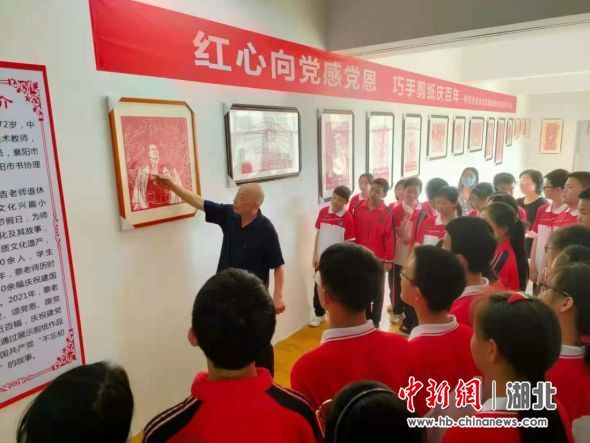 在中國共產(chǎn)黨成立100周年之際,棗陽市非物質(zhì)文化遺產(chǎn)傳承人蔡世吉,以紙、刀、剪等工具,創(chuàng)作出一幅幅精美絕倫的剪紙藝術(shù)作品,謳歌黨的豐功偉績,表達(dá)對(duì)祖國繁榮富強(qiáng)的美好祝愿。