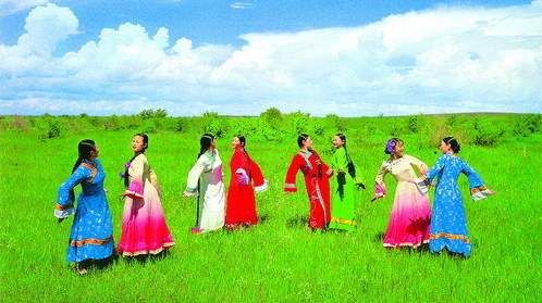 被稱為蒙古族舞蹈活化石的安代舞,是流傳內(nèi)蒙古通遼市周邊地區(qū)的一種原生態(tài)舞蹈。依據(jù)習(xí)俗,早期的安代舞表演場(chǎng)地,中間立一斷軸車輪或木桿(意為鎮(zhèn)妖避邪之物),參加者圍成圓圈,右手握一塊綢巾或扯起蒙古袍下擺,隨領(lǐng)唱(領(lǐng)舞者)邊歌邊舞。