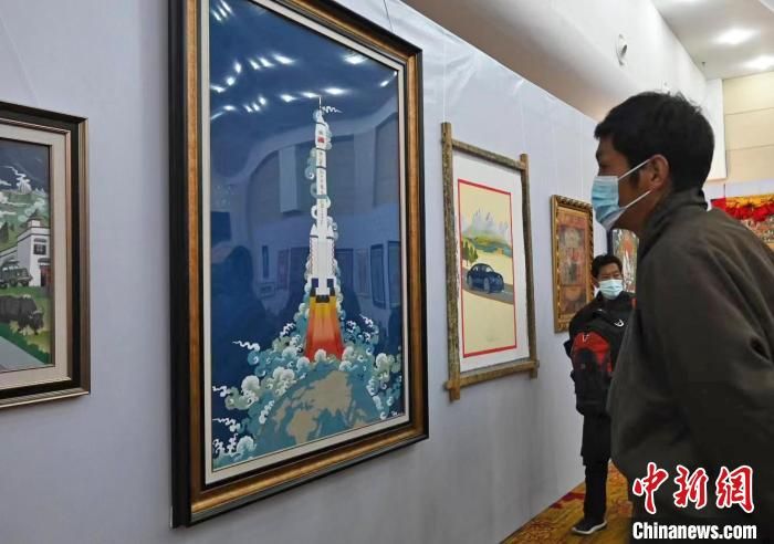 邊巴是作品《一飛沖天》的作者,這位畫師從1979年從事唐卡繪畫至今。他說,該作品以神舟十三號為主題,描繪了飛船沖出地球奔向星辰大海的瞬間。采用勉唐派唐卡繪畫語言和傳統(tǒng)礦植物顏料。同時融合了漢藏審美視角,立足于中國放眼世界的人類命運共同體胸懷,嘗試新時代新唐卡新融合的藝術表達。