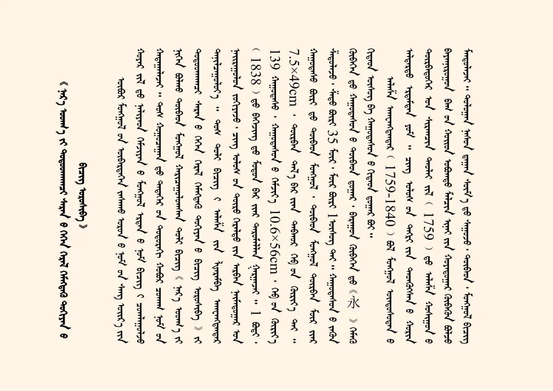 藏蒙對照詞典《詳解月光辭典》又稱《浩月輝映詞典》,該詞典由阿拉善拉隆巴阿旺丹德爾編著,清道光十八年(1838)北京嵩祝寺木刻本。1卷,139葉,頁面尺寸10.6×56厘米,版框尺寸7.5×49厘米,四周雙欄,梵來裝。每頁以藏蒙、藏蒙四行為階梯排列,每列35行,每行1字。頁面左側(cè)有藏文頁碼,右側(cè)有漢字《永》和漢文頁碼。