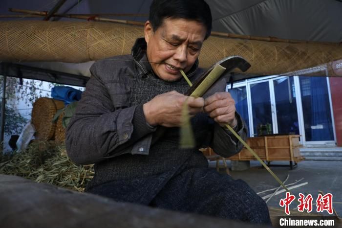 冬意凜然,來到浙江省湖州市安吉縣章村鎮(zhèn)章村村“大青竹藝”工作坊,還未進(jìn)門,就見到工作坊主人黃大青編織的身影。